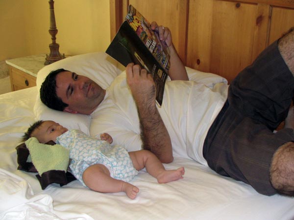 Our B&B host, Kris, adored her. “What a good baby! I like them when they get to be three months. She must be advanced.” (Yup, like all proud parents we think the same of her mere 2.5 months.) Hosts and other guests at various wineries either ignored her (haha) or kept commenting on how cute she was. We seemed to make friends with any baby or parent we met.