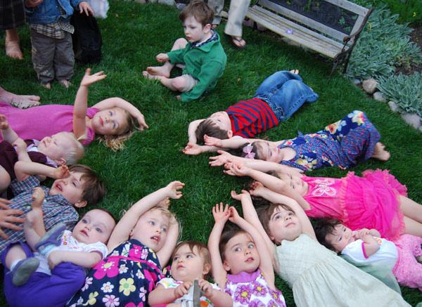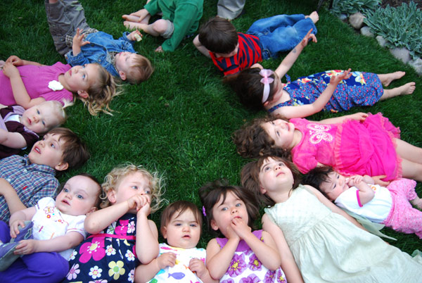 Every year since then we’ve tried to get another group shot, with varying degrees of success. This year, at nearly four years, we thought the kiddos might be able to re-create the original circle shot, and that we might somehow be able to capture it with a ladder and our everyday (albeit nice) cameras. We even added baby siblings to the mix. Enjoy!