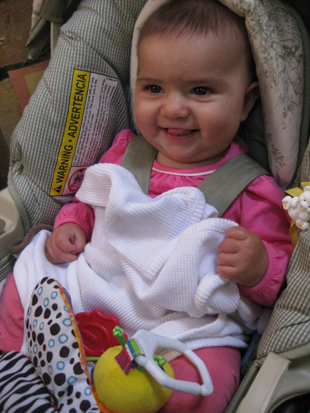 At age three, Melina finally “gets” Christmas. The day we decorated our house she started asking, “Is it Christmas yet?” prompting a brief discussion of “Christmas” versus “Christmas time.” She took it to heart, and even told Dad “It’s Christmas time Daddy, not Christmas” when he tried to tell her it’s Christmas and Santa is watching her every move.