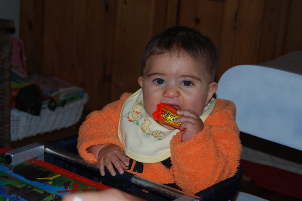 Luckily we have two advent calendars to help her count the days. Each morning Melina looks forward to opening the little advent drawer before she does anything else. The first few days she got coins or candy, so when on the third day she found only a small tangerine (stuck there in haste by yours truly) she literally burst into tears, her expectations dashed. Luckily a trade with Mama for a penny to put in her piggy bank made everything ok.