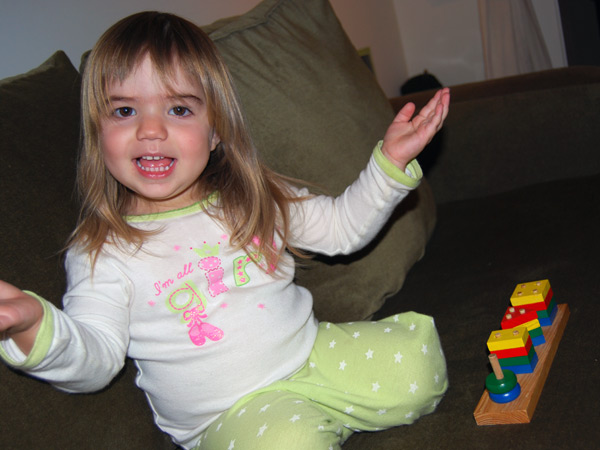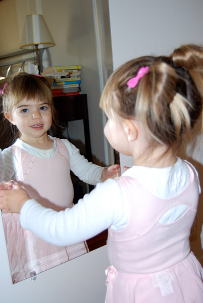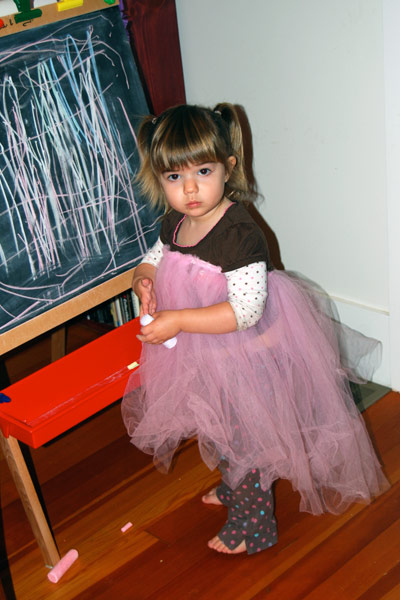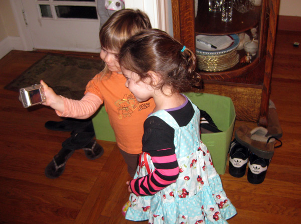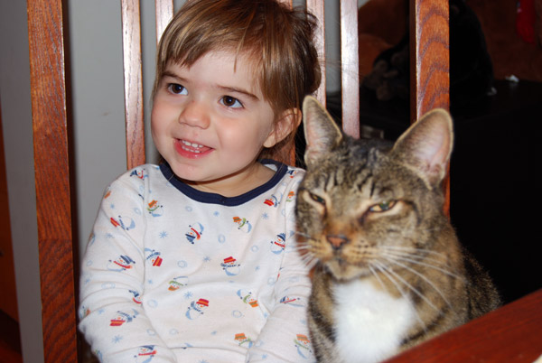 Melina was excited about singing “Snowman in the Frosting!” at her preschool holiday singalong. And a few weeks ago I asked her, “What do you want from Santa this year?” Her answer: “Christmas lights in my room. And I want pink hair.” But she was most consistent in asking for “big Swiper and tiny Swiper,” or a stuffed Swiper fox or two from the Dora cartoon she loves. (She got one stuffed Swiper and two printouts to color, one big and one tiny.)