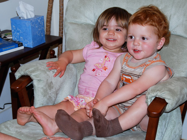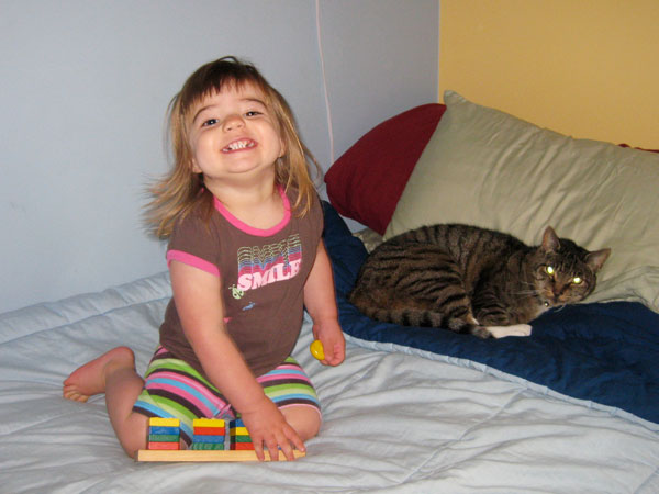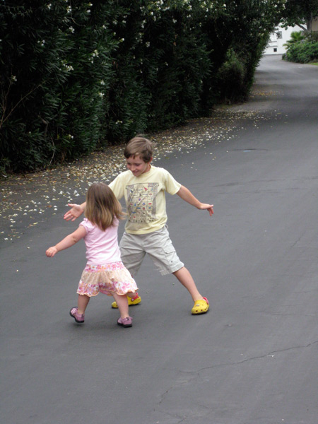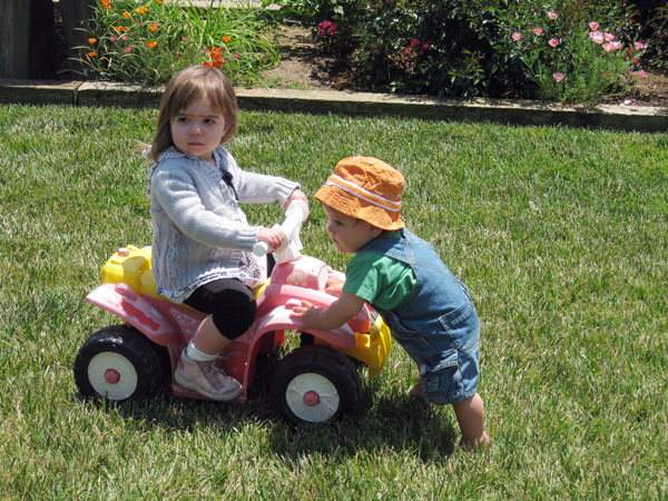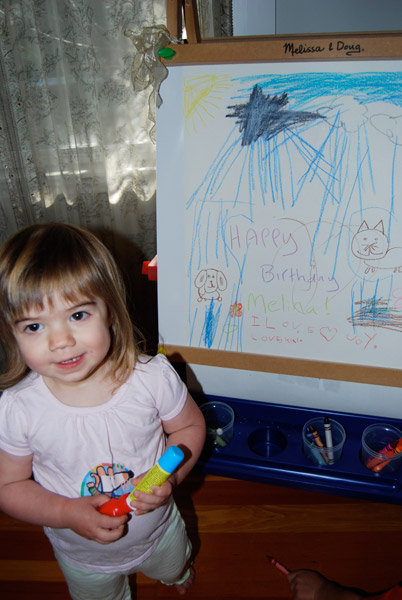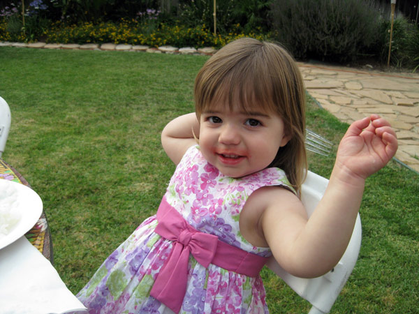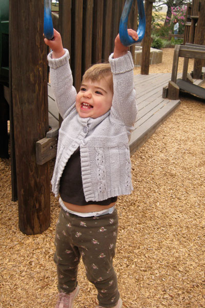 Melina made her first preschool friend! Juliette, a three-year-old little blond girl. She also talks about Sophia and “Banana” who I finally figured out is Hannah. She seems to like hanging out with the “big kid” three-year-olds at school, and also loves playing with three-year-old Kendall down the street and four-year-old Zoe Zarling (whose little sister Melina dubbed “Other Zoe.” Poor little sis!) She asks to play with cousins Noah and Lucas frequently. Luckily, we’ll see them in Capitola next weekend.