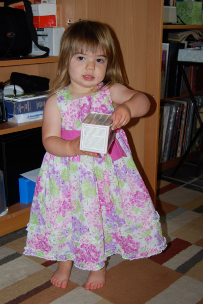 She’s developed a minor princess leaning. She sometimes insists on wearing “big dress,” a birthday gift from Grandma and Grandpa Weiss, and loves the book “Pinkalicious,” a birthday gift from Auntie Cyndie and Uncle Rich. Daddy bought her “Goldilicious,” which isn’t nearly as good in our minds but features a unicorn, so Meli loves it.