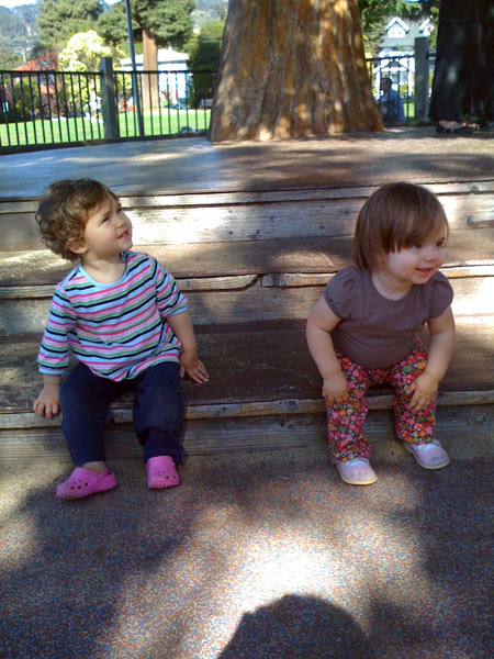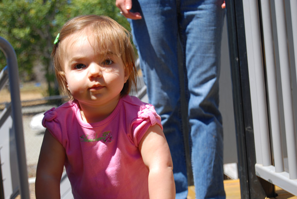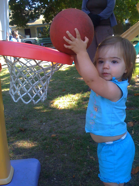 She’s walking very quickly now. Last week at the park she nearly broke into a run to chase after some dogs. Since she hasn’t yet figured out the running thing it was just a very quick waddle, and (at least to her mama) adorable.