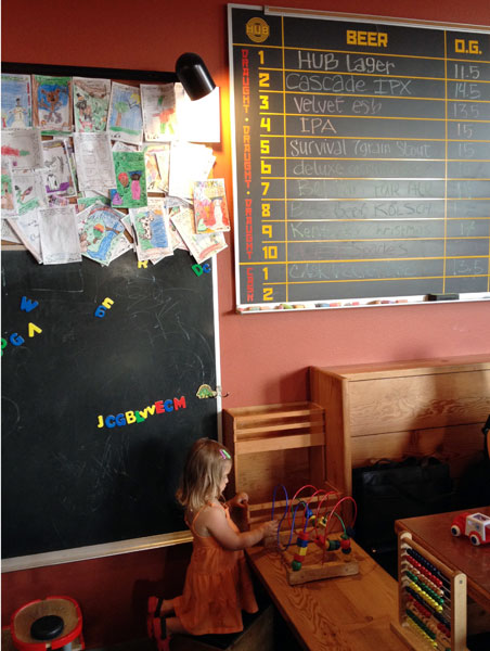 Back in Portland we hit Powell’s again, visited the Oregon Science Museum (OMSI), had brunch at Portlandia-like Tin Shed, explored neighborhoods, and mostly just continued to hang out with Sarah and her family. By staying in her parents’ basement we also got to catch up with Ivona and Don and their two crazy cats, Bob and Zora. Oh, and we found our favorite restaurant ever: Hopworks Urban Brewery (HUB), with a great kiddie play area and the beer (Ace of Spades imperial IPA) that for the time being has ruined all other beer for me.