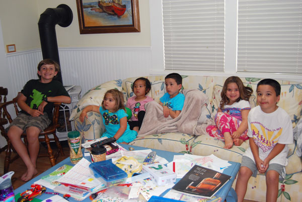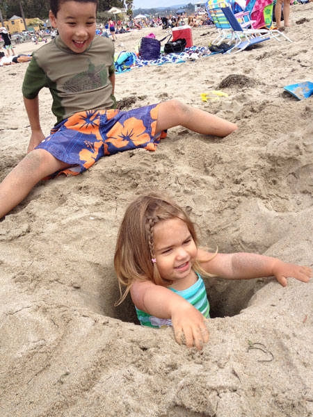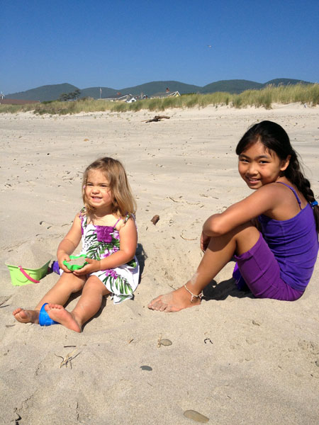 Kai and Joy spent hours in the sand, mostly kicking and throwing it to their hearts’ content, and without anyone near enough to care. Nalani scooped sand into buckets, dumped, and repeated. Melina and Linnea explored. And we all enjoyed countless games of Sleeping Queens, and introduction to duct tape art (Joy made Melina a purse!), and chill catch-up time.