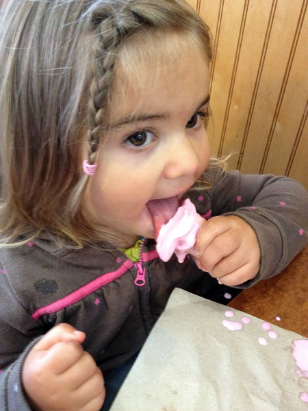 We spent our first night in Portland at a hotel (complete with a pool looking out towards Vancouver, WA), more as a stop on the way to the coast than anything. It also allowed us to get re-acquainted with Sarah, Kari, and the girls at a much better brewery (Laurelwood) and check out Powells and infamous Voodoo Donuts the next morning. Somehow the kids and I managed to walk past the red-rope line guiders at Voodoo and right in to take our time picking out a bacon maple, rice crispies/chocolate/peanut butter, and rainbow-cereal-on-pink donut before finding a seat on the alley picnic tables. By then the line stretched halfway down the block.