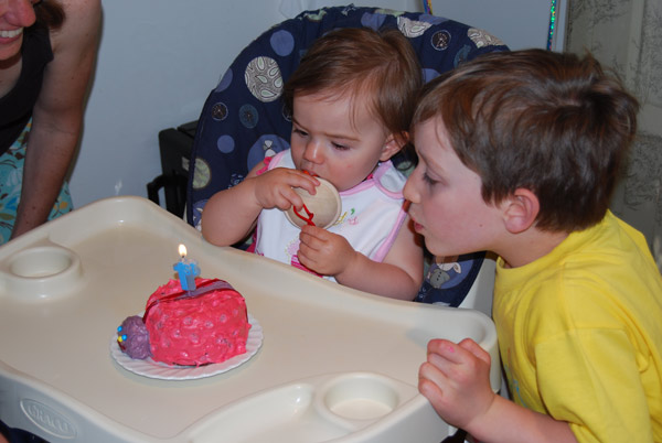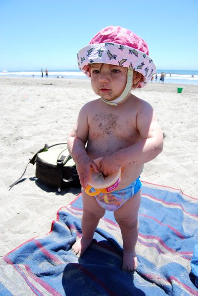 I now find it funny when parents say “My kid got up and started walking at x months” and seem to pinpoint it to an exact day. I can say that Melina took her first steps the day after her first birthday but she then flirted with the whole walking thing for a good couple weeks. First it was a game (she would only walk to someone) and then it was only when the mood struck her and sleepiness didn’t get in the way. By 12 1/2 months she seemed to be walking as often as crawling, and within a week preferred moving upright pretty much all the time. Yay, Jelly Bean!