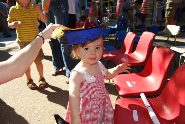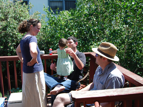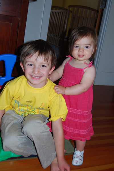 She’s started asking to hold her own spoon to feed herself things like yogurt. This afternoon I caught her try to stab a small piece of chicken with the rounded edge. She soon figured out it was easier just to pick it up. Speaking of food: She refuses to drink cow’s milk. And soy milk, for that matter. We’ve tried everything (bottles, sippy cups, big kid cups, even spooning it to her), but all to no avail.