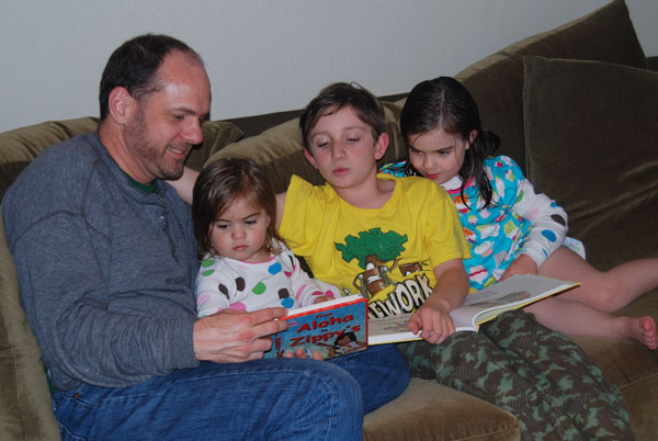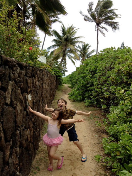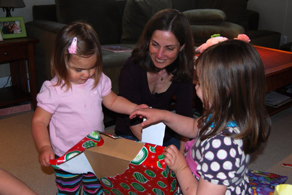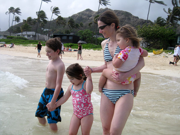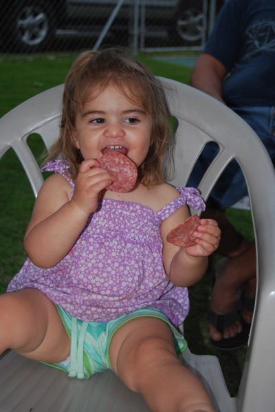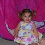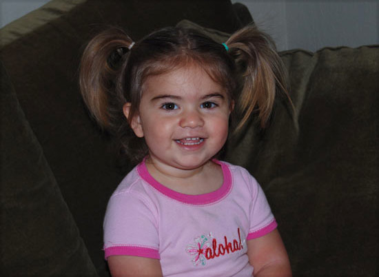 She’s a whiz at toddler puzzles, counting to 13, and singing the ABCs and other catchy preschool tunes. She also knows what words are color words, but for now calls everything “boo” (blue). She also love, love, loves books. She will still sit on her own and quietly flip through her favorites for over 30 minutes. She’s very insistent about getting in enough mommy and daddy story time, asking one of us to “Peas come” to the reading pillow, then gently shoving her chosen books, one after another as each story finishes, into the grown-up’s hand. In the evening this serves another purpose: playing into her beloved routines. As long as we follow the story and sleepsack ritual and she’s heading to her room the same time as big bro and sis, Nalani goes to bed without a fuss. Thank you, Nalani.