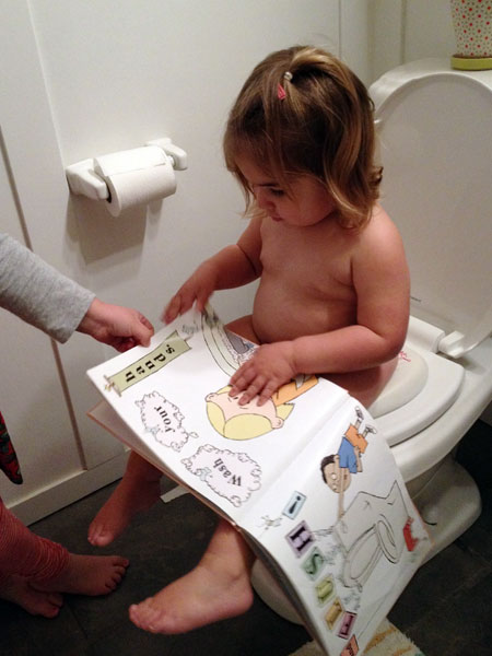 Nalani started showing distinct interest in the potty a little over a month ago. She asks to read “Time to Pee!” (by Mo Willems) several times a day, and goes through all the potty-ing motions seamlessly. Except for the fact that nothing, not a single tinkle, has ever come out. For over a month now she asks to use “potty,” goes to the bathroom and puts the toddler ring on the pot, pulls down her pants (we have to help with the diaper), and sits. Then after nothing happens she wipes, gets down, flushes, and washes her hands. Once she sat there long enough for Melina to recite the whole “Time to Pee!” book, which took a good 10 minutes. Not a drop. I’m glad she at least has the routine down, and am hoping the lack of action is the sign of a really strong bladder.